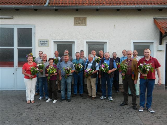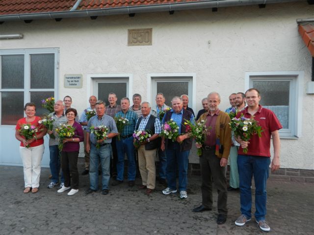 Ein Treffen des Realverbands im September 2012 zeigt die Mitglieder vor dem Feuerwehrgerätehaus in Brockensen.