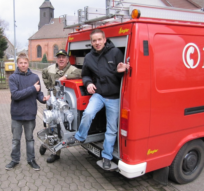 2011: Auch die Feuerwehr Brockensen geht mit dem Fortschritt. Am 29.12.2011 nahmen die Kameraden Stefan Bös und Jürgen Brockmann zusammen mit Fabian Brockmann das verspätete Weihnachtsgeschenk entgegen. Die FFW Brockensen ist nun stolze Besitzerin einer neuen Ziegler Ultra Power mit Turbomat. Ein Knopfdruck genügt, um die Pumpe zu starten, Voraussetzung ist dabei natürlich eine geladene Batterie.