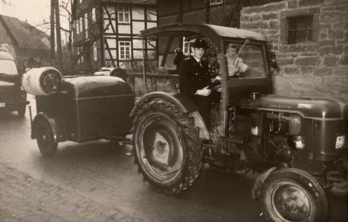 Nun war der Fortschritt nicht mehr aufzuhalten. 1952 erhielt die Wehr mit einer gebrauchten TS 8, mit Anhänger für Schlepperzug, die erste richtig leistungsfähige Spritze.